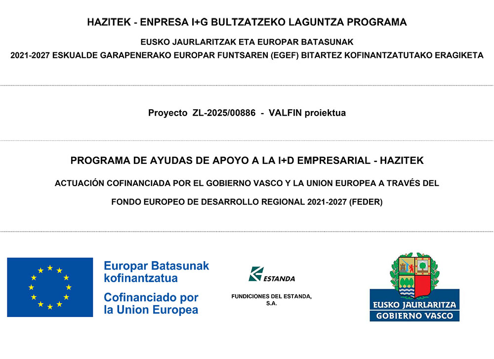 Dentro del marco de sostenibilidad ambiental, y con el respaldo de la Unión Europea y del Gobierno Vasco, Estanda participa activamente en el proyecto VALFIN, orientado a la investigación de soluciones para el aprovechamiento de los residuos de fundición, impulsando la economía circular dentro de la empresa.